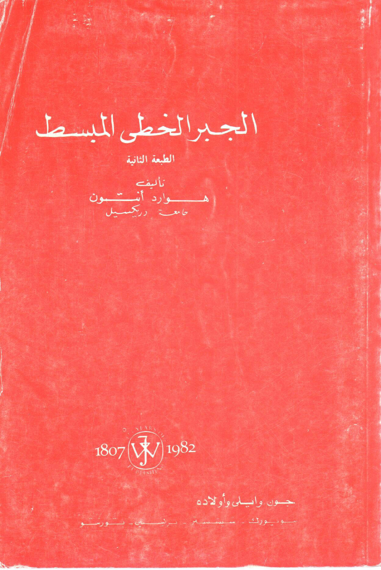 الباب الأول: يتعلق بأنظمة المعادلات الخطية وكيفية حلها وبعض خواصها ويحتوي أيضاً على المادة الأساسية في المصفوفات وخواصها الحسابية