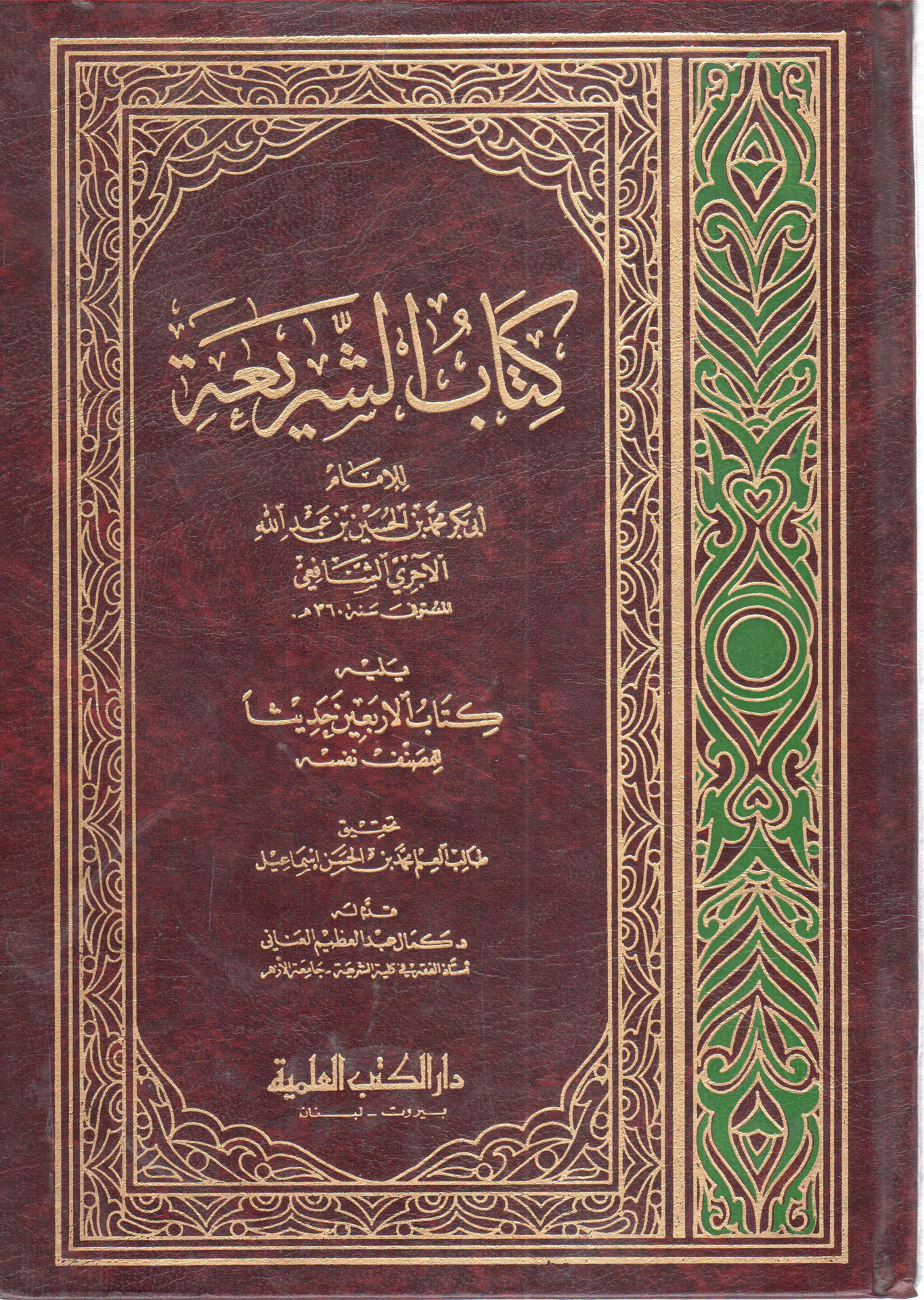 اسم المؤلف : أبي بكر محمد بن الحسين بن عبد الله الآجري الشافعي – نوع التجليد : مجلد – حجم المجلد : كبير .