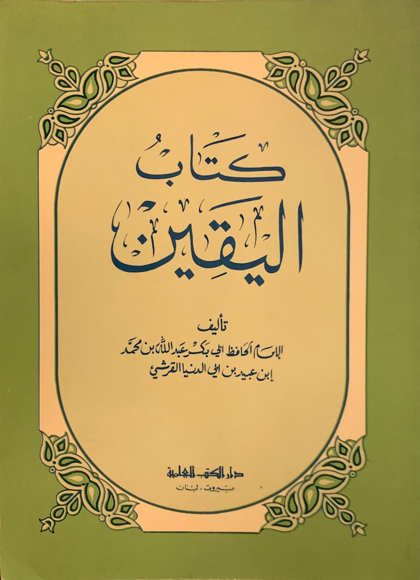 أسم المؤلف : الحافظ أبي بكر عبد الله بن محمد إبن عبيد بن أبي الدنيا القرشي – نوع التجليد : غلاف – حجم الكتاب : كبير .